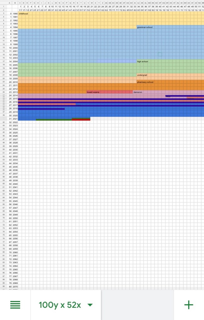 saw this very creative, simple, powerful poster that demonstrates a 90-year human life as measured in weeks. i don’t get to know if i will get more or less time. but working the schedule i do (7 nights on/7 days off) and living the life i have lived thus farβ¦ i’ve got my work cut out for me! may this ever unfolding and delicious dance with the universe continue!