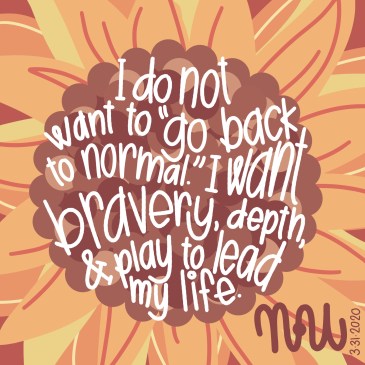 This is a defining moment in our collective psyche. COVID-19 and these coming weeks and months (… years!?) are part of history. YOUR personal living history. And it’s still unfolding. The world, the universe, and the human race will never be the same. Sometimes this terrifies me. Right now, it excites me and lights a … More What Is Normal, Anyway?